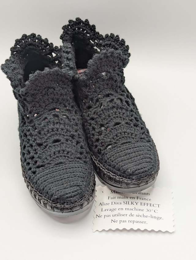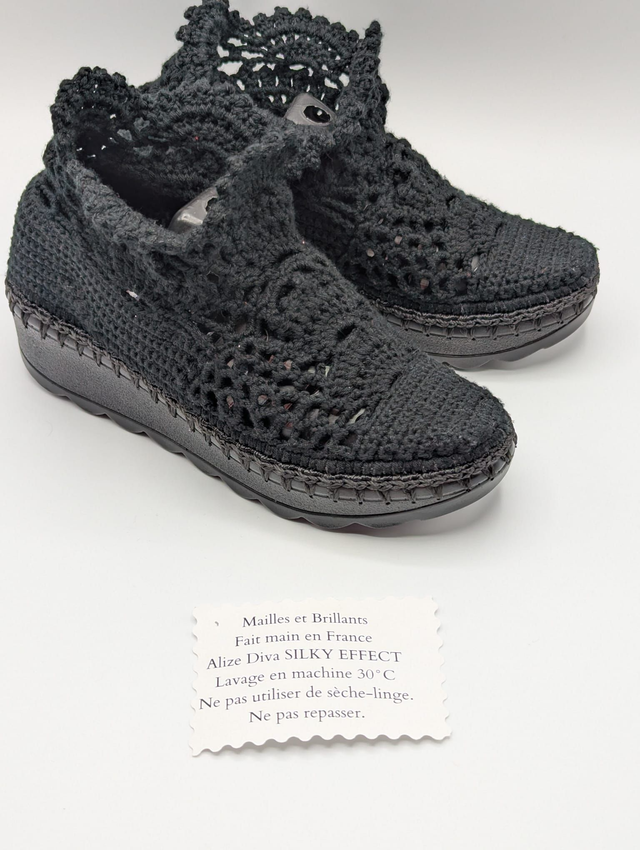 Découvrez l’élégance et le confort réunis dans cette paire de chaussures crochetées pour adultes, entièrement faites main en France. Conçues pour un usage quotidien, elles allient style raffiné, souplesse et légèreté, tout en mettant en valeur un véritable savoir-faire artisanal.