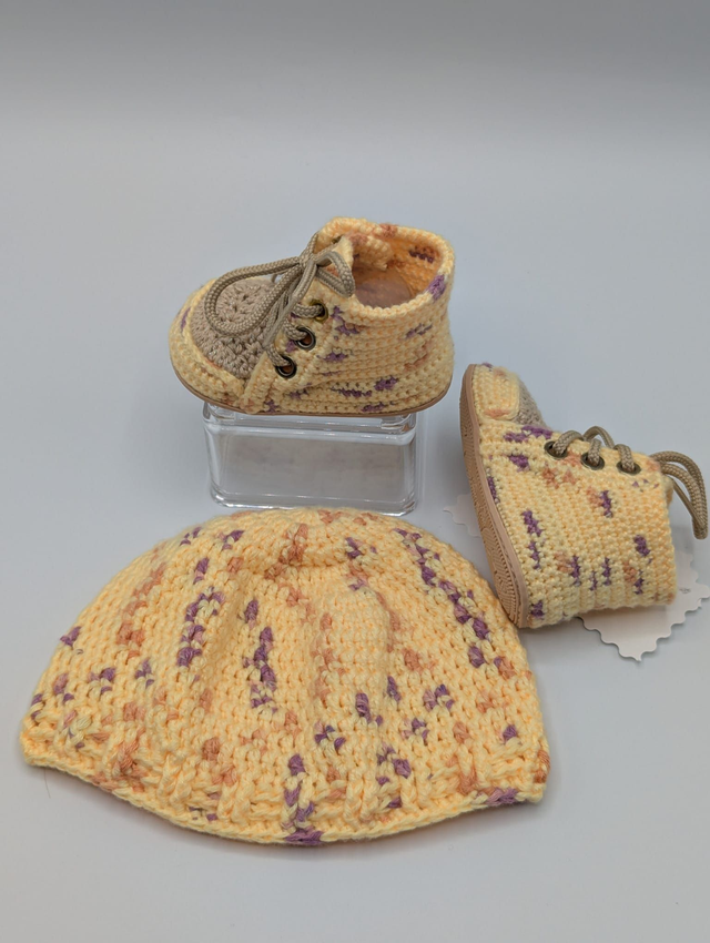 Ensembles bébé crochetés – bonnet et chaussons – modèles au choix