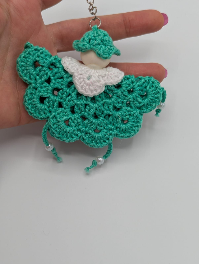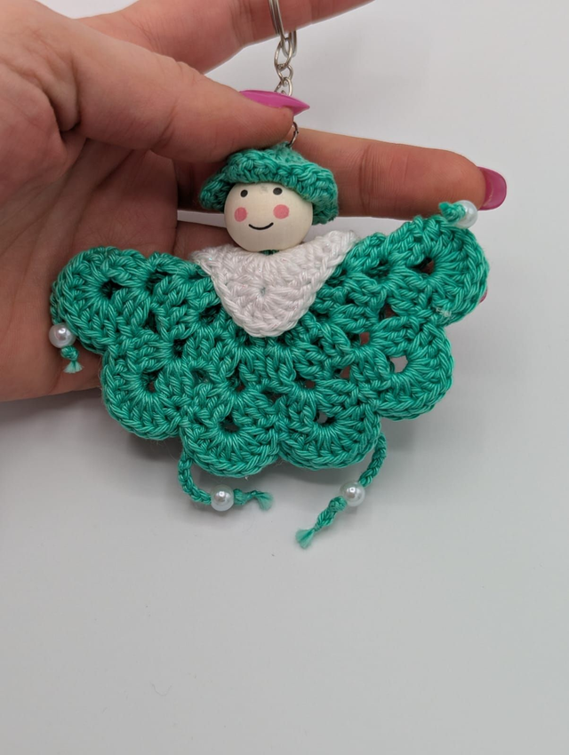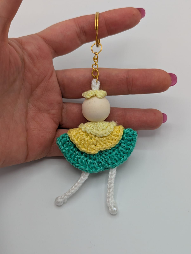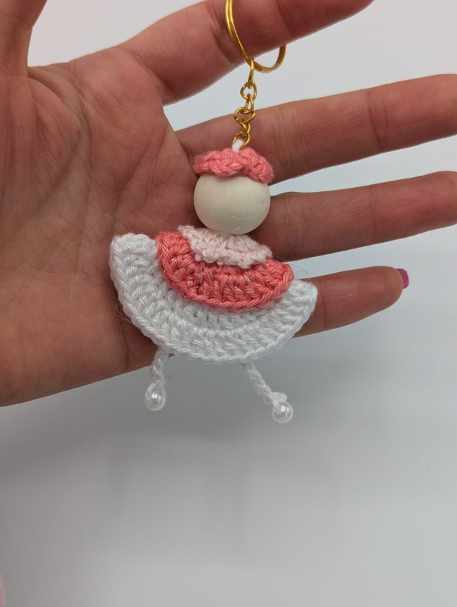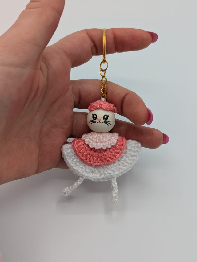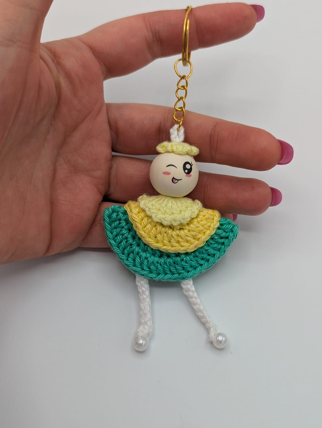 Joli porte-clés poupée au crochet, entièrement fait main, avec beaucoup de soin et de délicatesse.