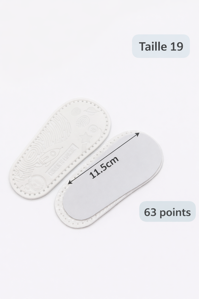 Semelles perforées à crocheter pour bébé – Taille 19 (11,5 cm)