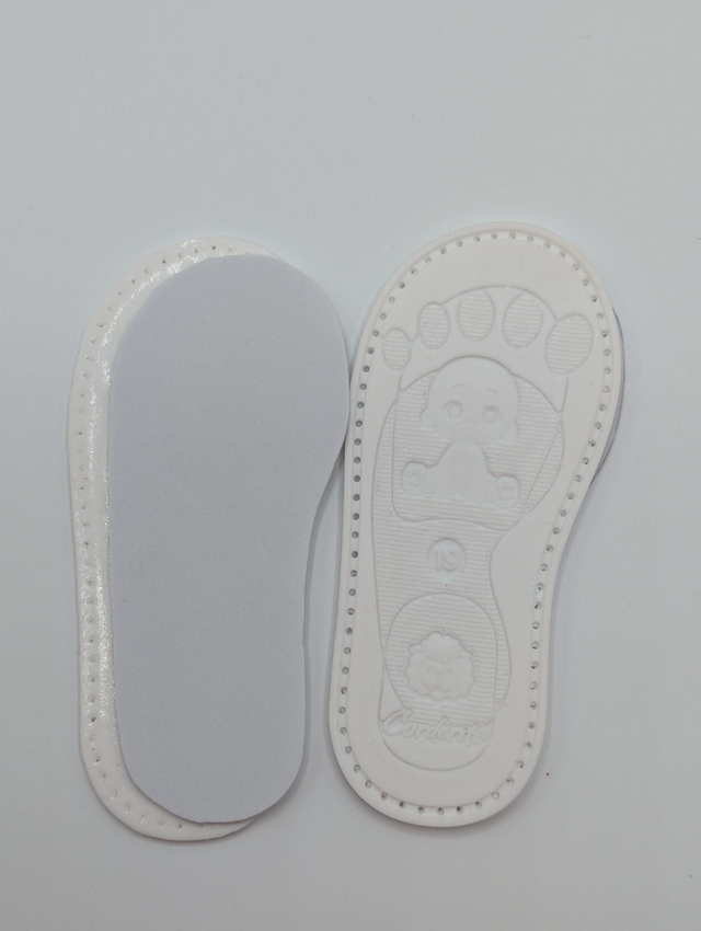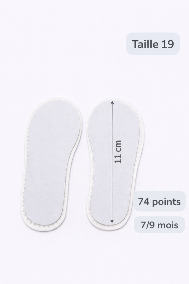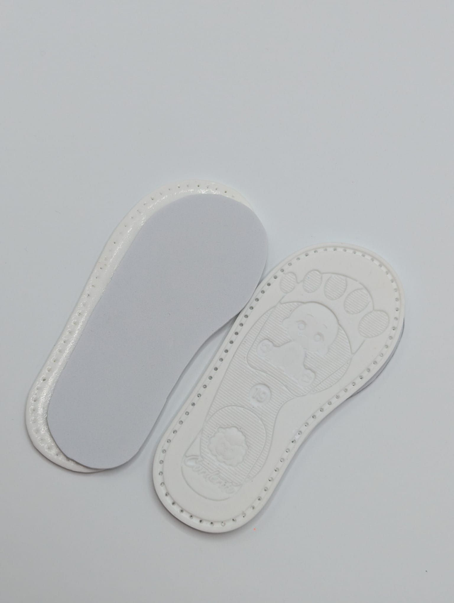 Semelles en plastisol non toxique, idéales pour la réalisation de chaussures et chaussons crochetés pour bébés..
