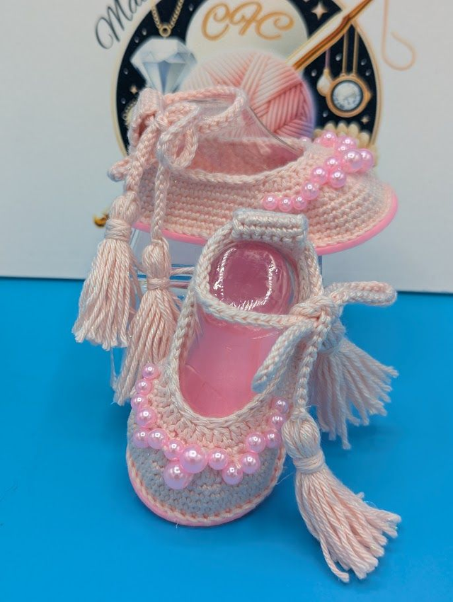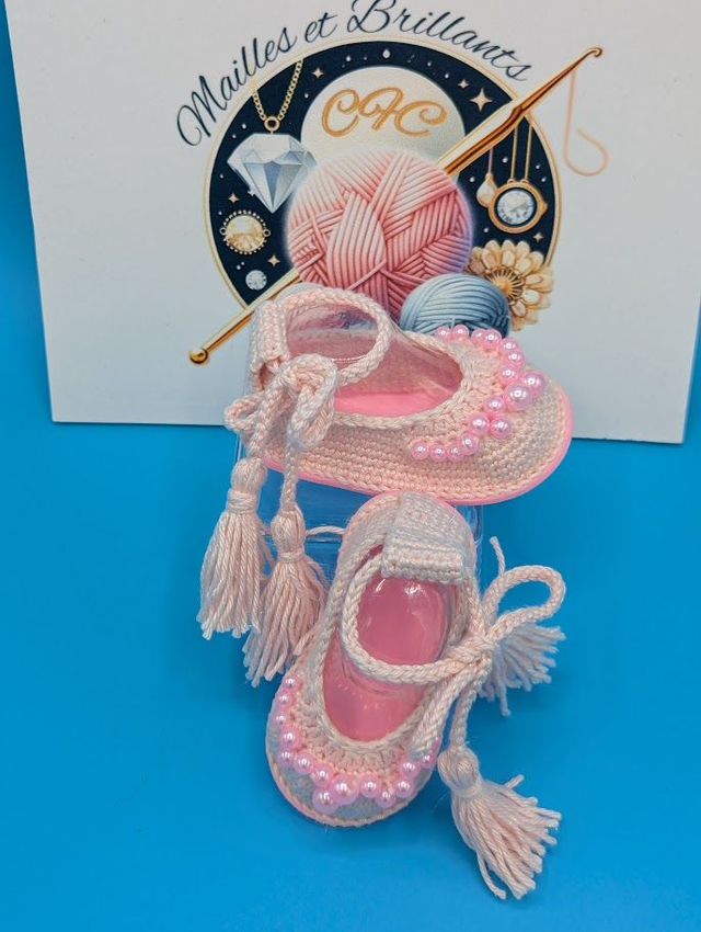 Ballerines bébé crochet avec perles - Mailles et Brillants