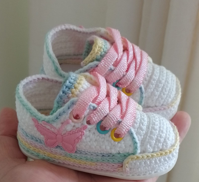 Baskets bébé crochet Arc en Ciel personnalisé – Mailles et Brillants