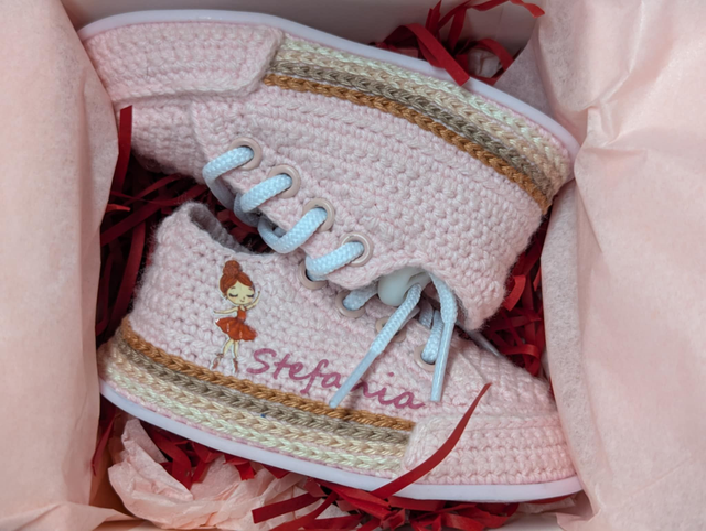 Idéales pour un cadeau de naissance original ou un souvenir unique, ces baskets crochetées sont parfaites pour compléter la tenue de bébé avec style.