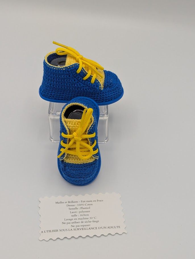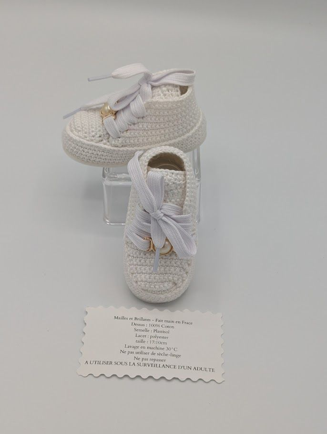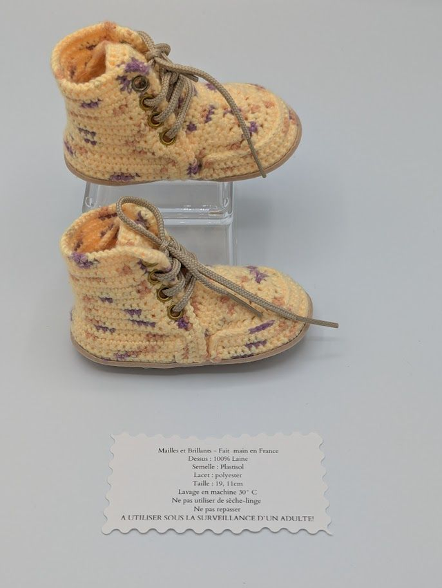 Offrez à votre bébé des chaussures crochetées artisanales, spécialement conçues pour les nouveau-nés jusqu’à 15 mois. Chaque paire est entièrement faite main en France, avec une attention particulière portée au confort, à la douceur et à la sécurité des tout-petits.