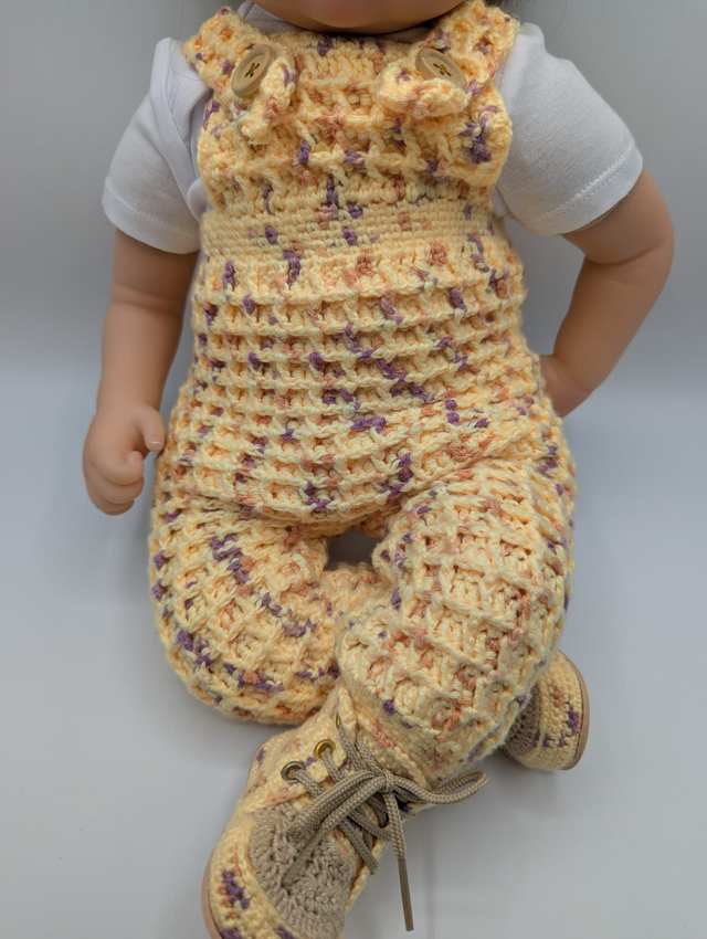 Ensemble bébé crocheté 100 % fait main – bonnet, salopette, blouse et chaussons