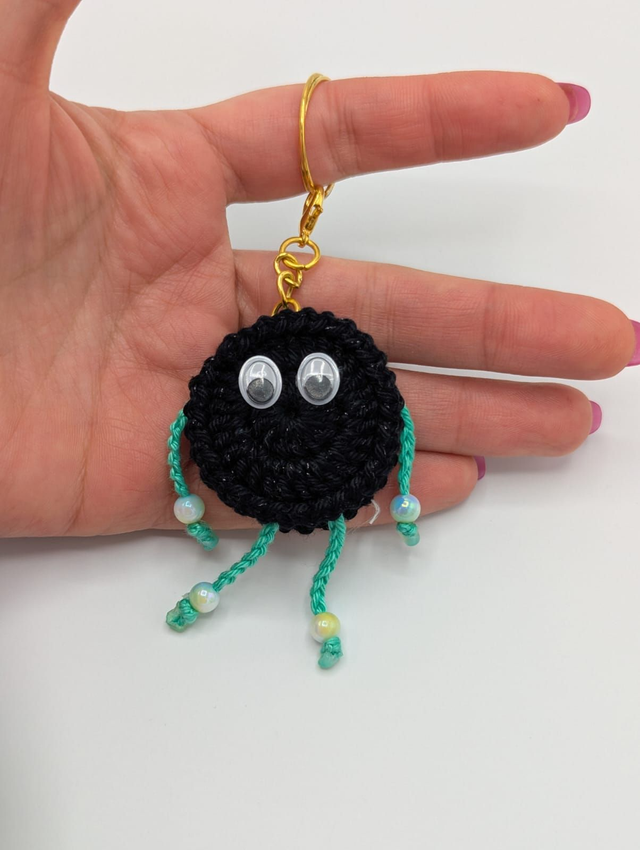 Laissez-vous séduire par ce porte-clés biscuit revisité, entièrement crocheté à la main en coton.