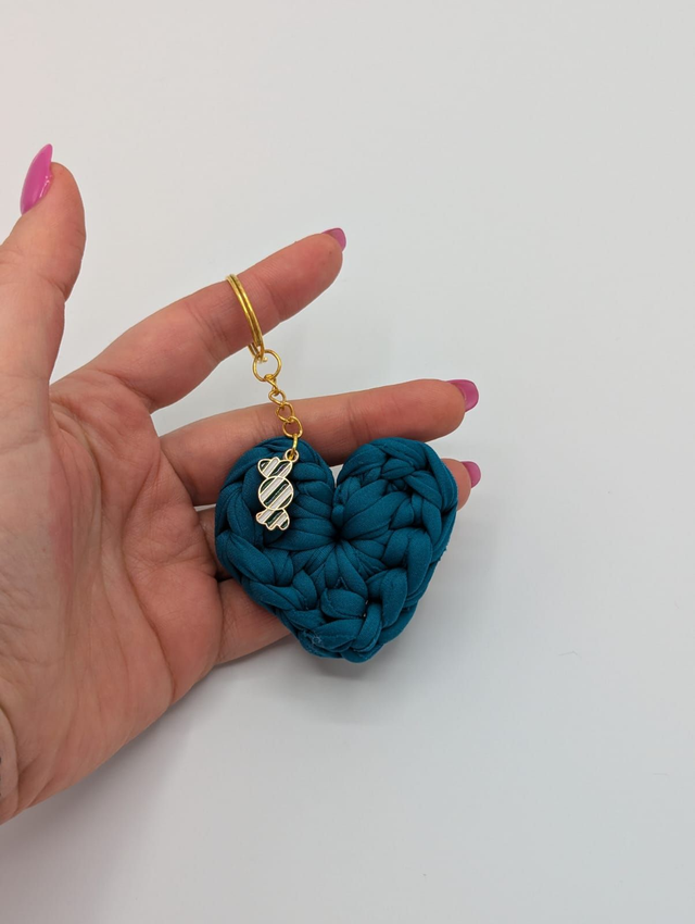 Porte-clés cœur au crochet en coton – Fait main
